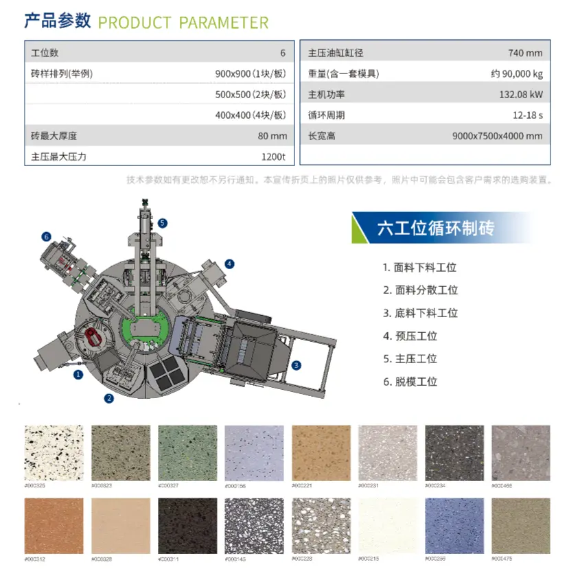 The HP-1200T Rotary Table Static Press creatively separates the brick-making process into 7 stations, arranged in a circular layout, reduceing the floor space, and has a great corona area and finging height range, cupiens ut clientium diversae requiruntur ad imitationem lapidis concreti producti obvios, implens hiatum in gyratorio domestico septem- statio imitatio machinis lapideis latericiis. Eius norma "T/CCMA 0125-2022 Circulus multi-statio Static Press Concretae Clausus Formans Machina formata" electa est ut unus e numero centum vexillum applicationis demonstrationis incepta Ministerii Industry et Information Technologiae anno 2023 electa est.