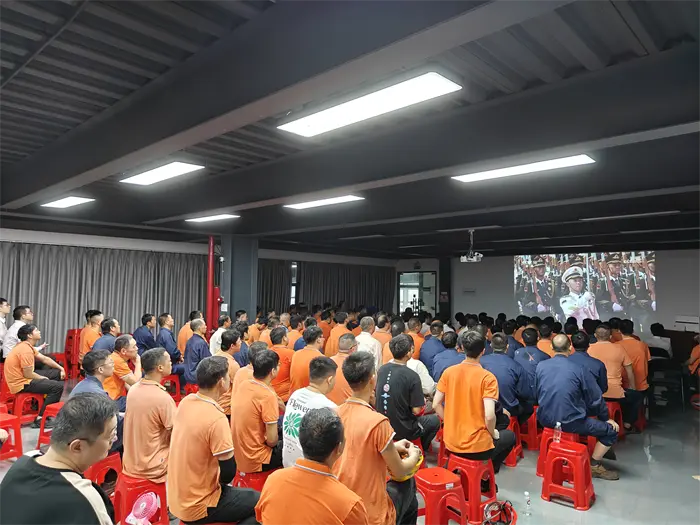 Dies 3 Septembris erat magnae significationis pro universo populo Sinensis. In hoc speciali die, Fujian Quangong Machinery Co.,Ltd Praeses Fu Binghuang et Procurator Generalis Fu Xinyuan duxit omnes conductos in comitatu colloquii locus ad spectaculum magnificum pompam militarem et testem hoc momentum historicum excitando.